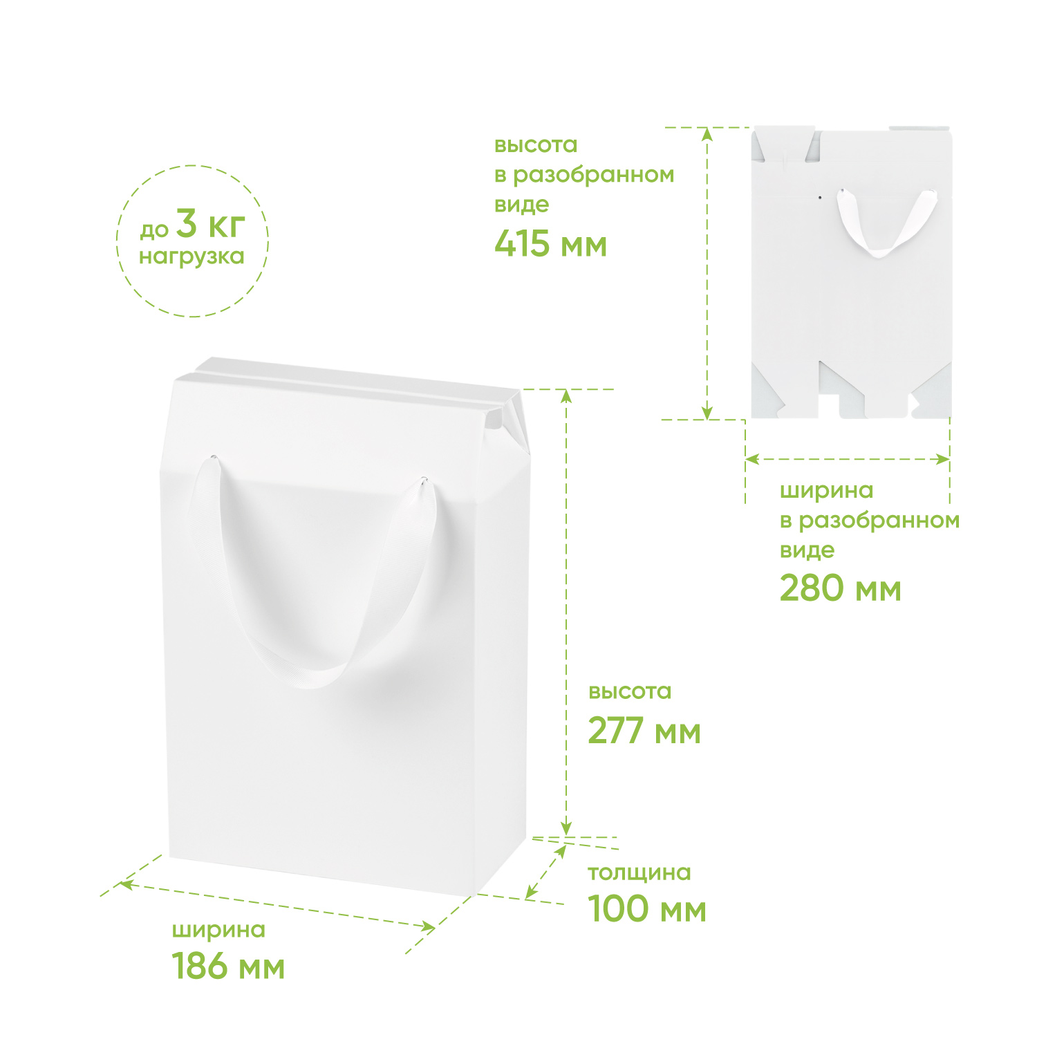 Подарочная коробка-пакет универсальная малая, белая, 186х100х277 мм