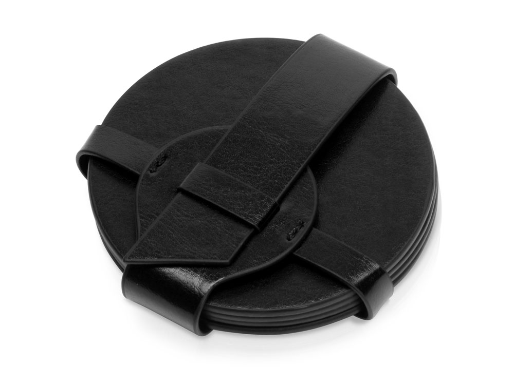 Набор состоит из четырех подставок и ремня-чехла, с помощью которого костеры очень удобно хранить в одном месте. Подставки круглой формы идеально подойдут для бокалов разного диаметра. Универсальная форма, легко моющийся материал, персонализация на самих костерах, а также ремешке. -