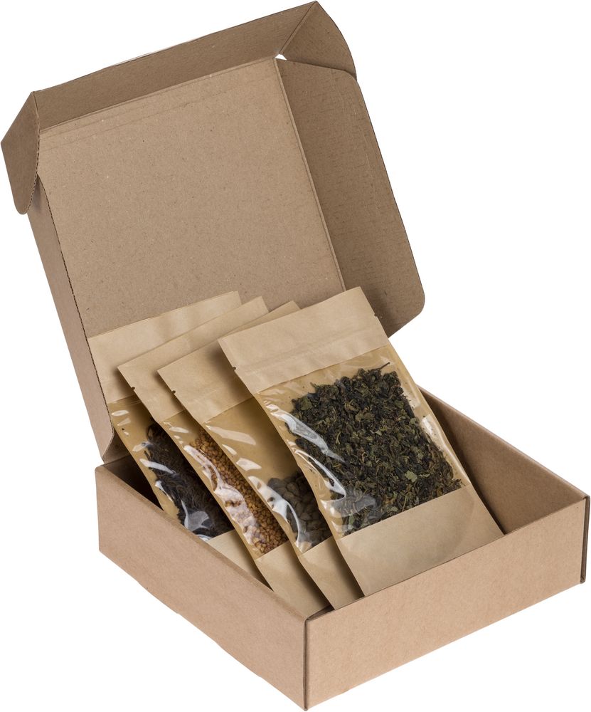 Самосборная коробка-шкатулка из неокрашенного микрогофрокартона.