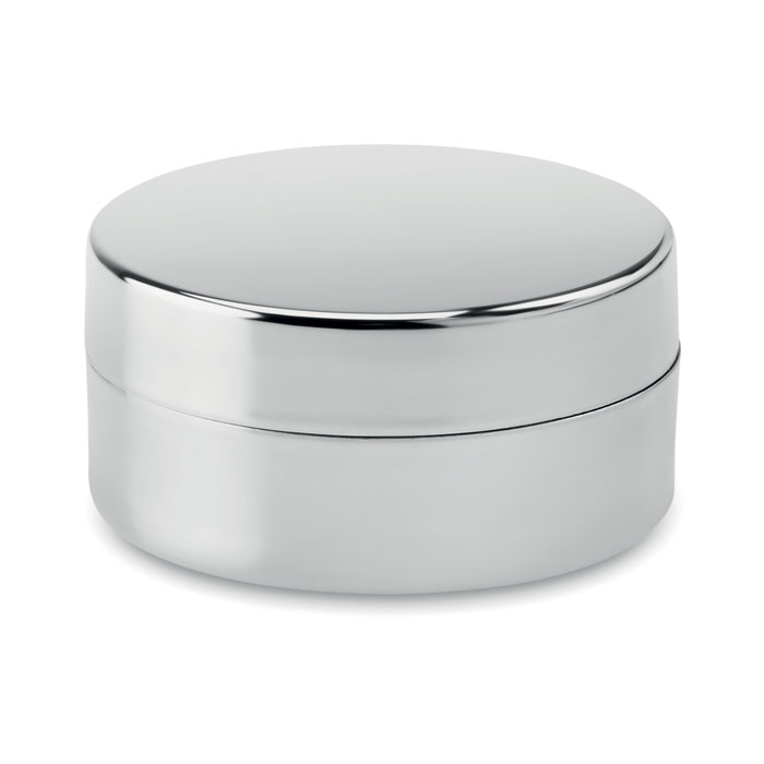 Balsam de buze în cutie argintie.