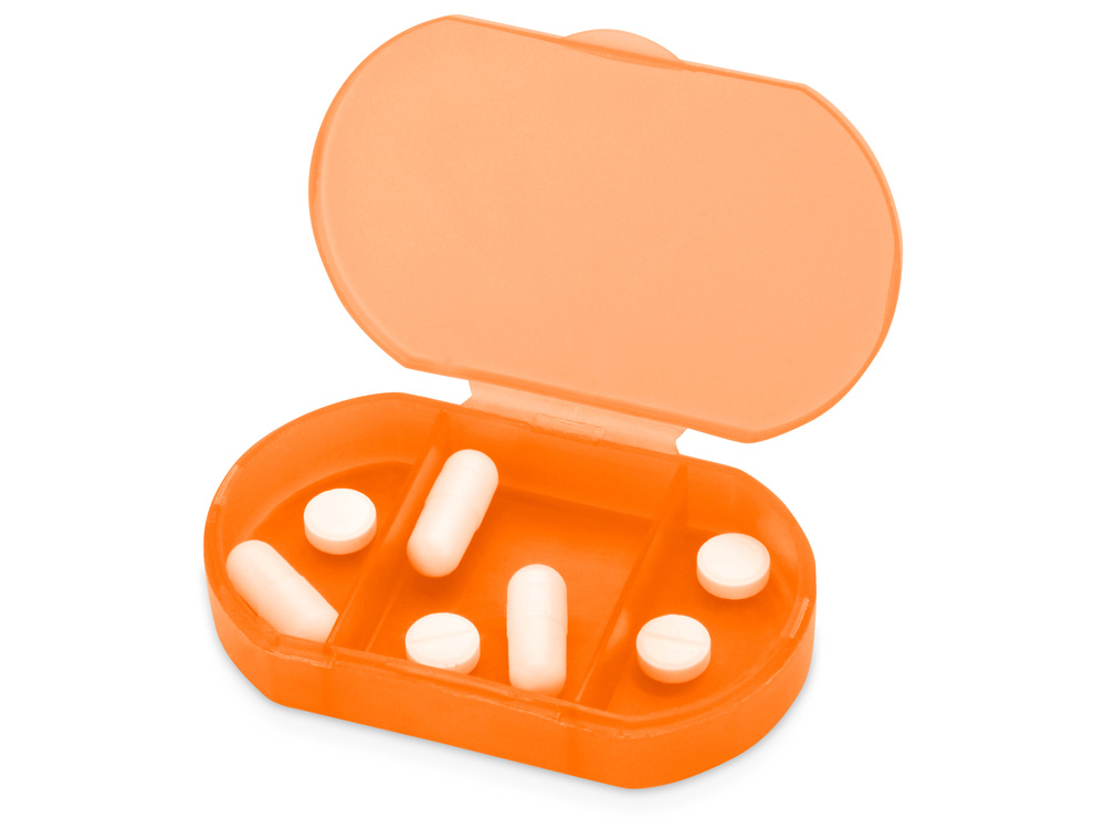 Компактная таблетница выполнена из прочного полупрозрачного пластика, имеет три отделения. -