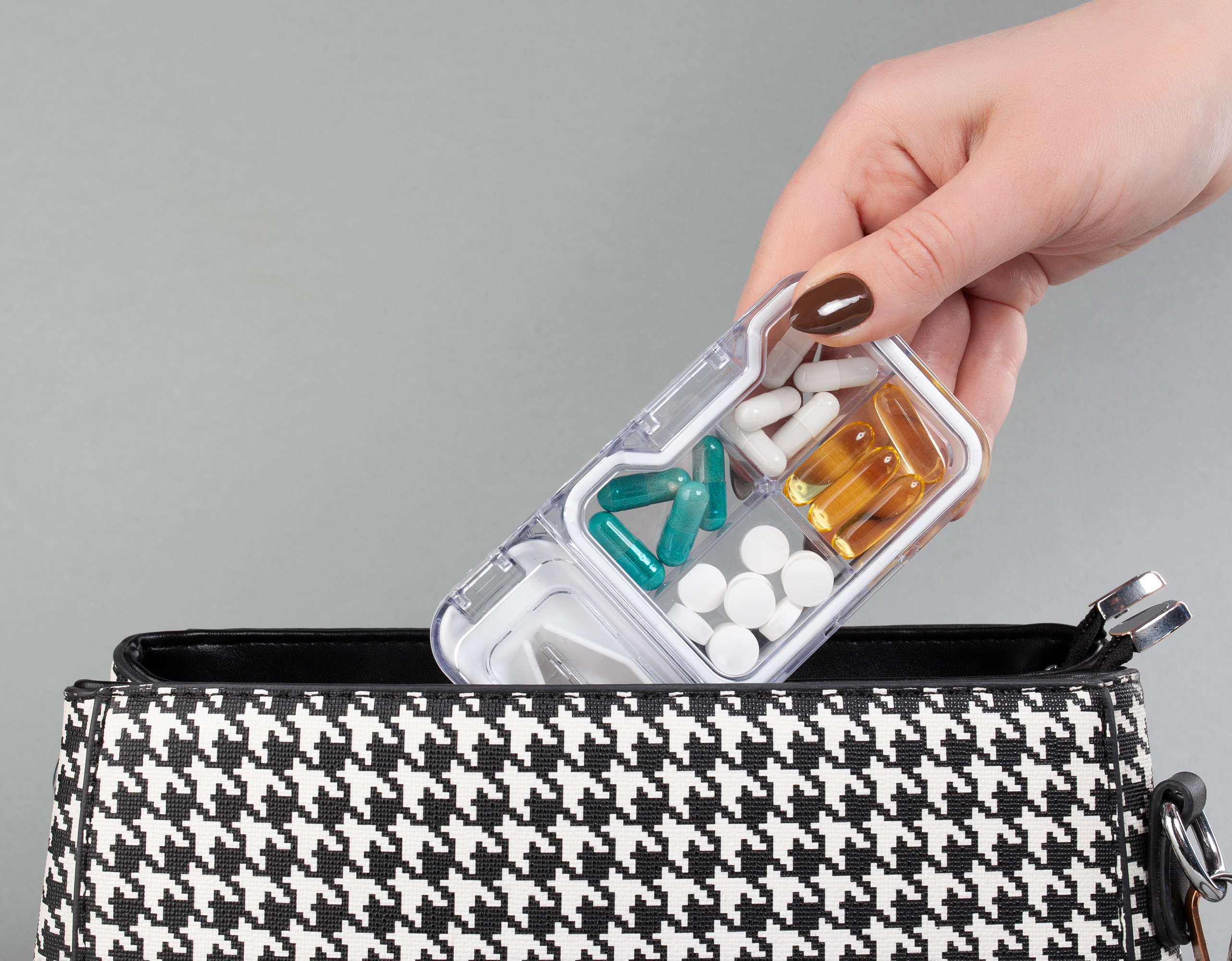 Всегда иметь под рукой. Компактную таблетницу удобно брать с собой в дорогу, на работу или в путешествие. Она легко поместится в сумке или кармане.