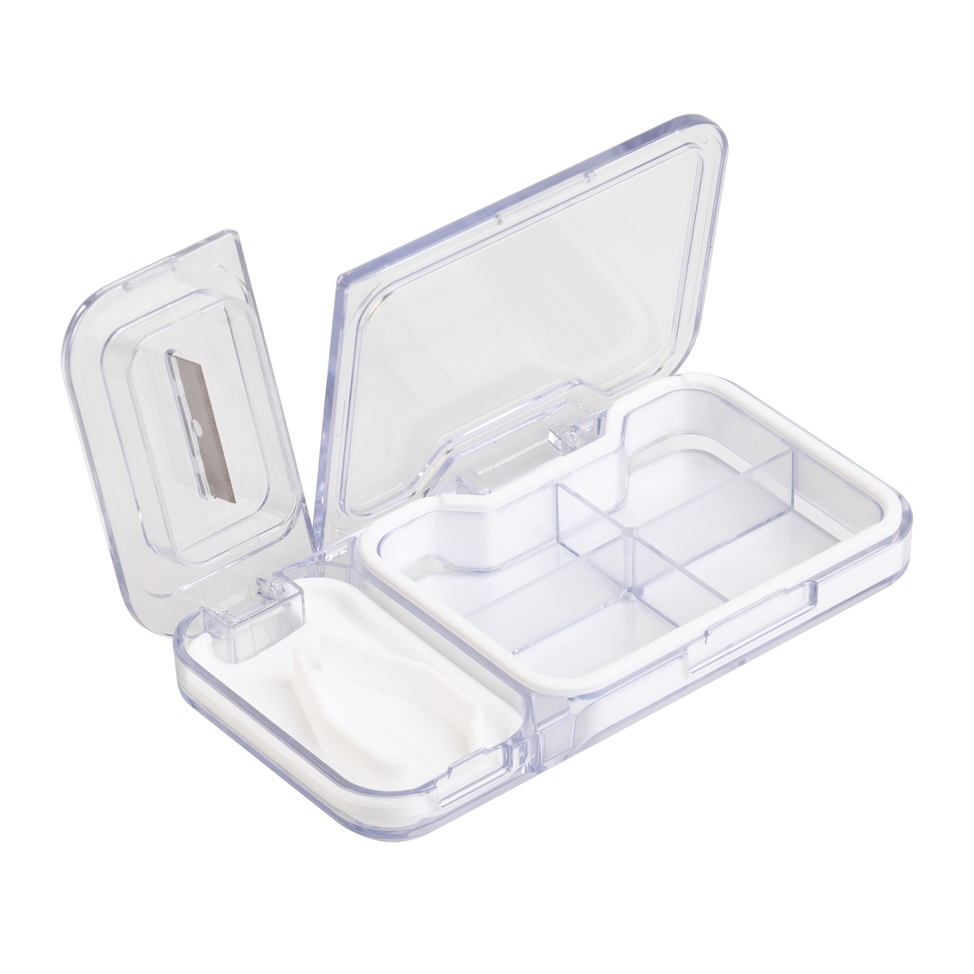 Легко делить таблетки. Встроенный нож-делитель позволяет аккуратно и безопасно разделить таблетки на нужные дозы - половина или четверть.