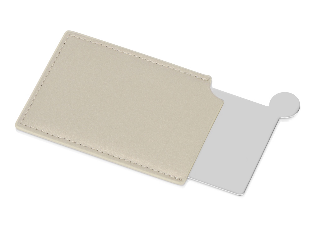 Оригинальное зеркало в чехле из искусственной кожи толщиной всего 3 мм легко поместится не только в сумке, но и в кармане или небольшом органайзере. Выполнено из металлического сплава и отполировано. Такое зеркало никогда не разобьётся. Надпись или логотип можно нанести как на чехле, так и на самом зеркале. -