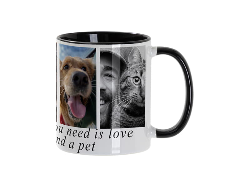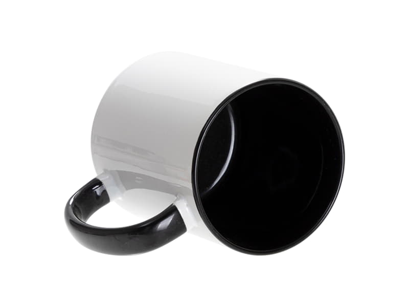 Кружка для сублимации, 330 мл, d=82 мм, стандарт А, белая, черная внутри, черная ручка