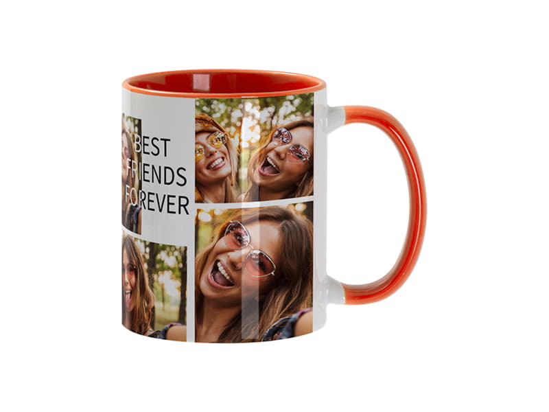 Кружка для сублимации, 330 мл, d=82 мм, стандарт А, белая, оранжевая внутри, оранжевая ручка