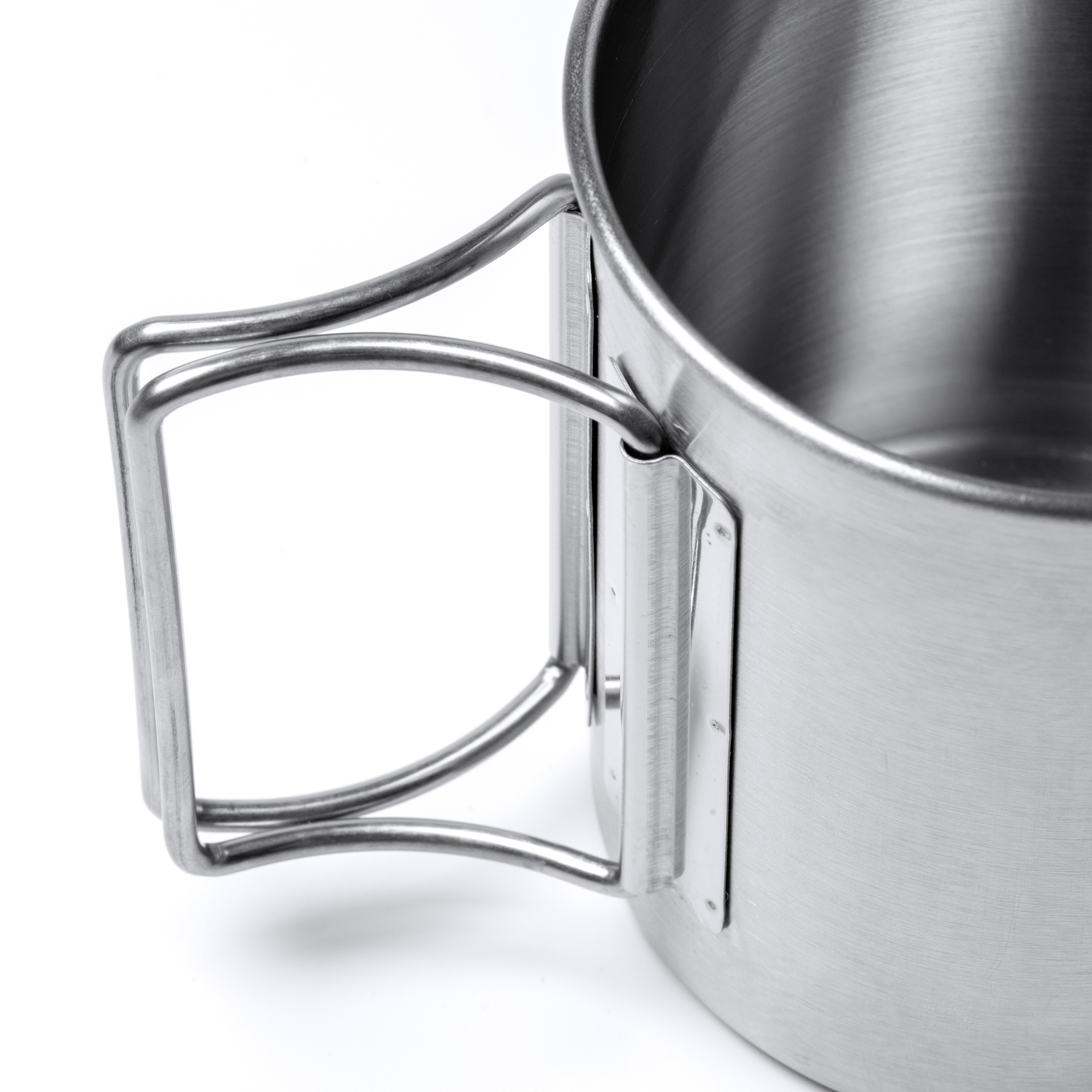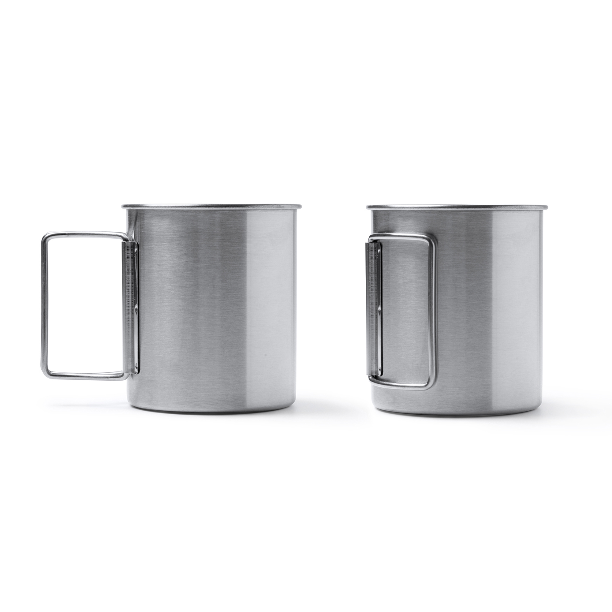 Кружка из нержавеющей стали со складными ручками. Вместимость: 450 мл. Идеальная кружка для походов и приключений.- Виды нанесений: Гравировка-А2 (оптоволоконный лазер), Гравировка Круговая (оптоволоконный лазер), УФ-печать А2, УФ-Лак, УФ-Цвет+Лак