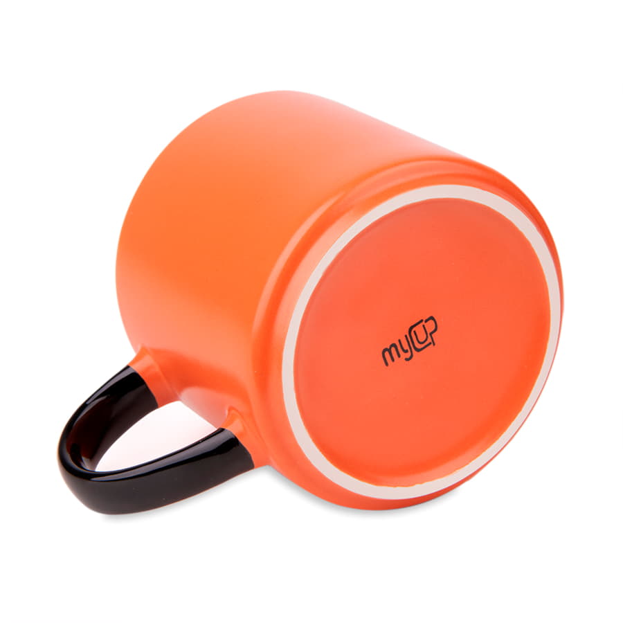Ёмкая кружка трендовой цилиндрической формы с матовым покрытием.Яркий цветной корпус с черной ручкой и кантом по краю.Цвет близкий к Pantone 165C -