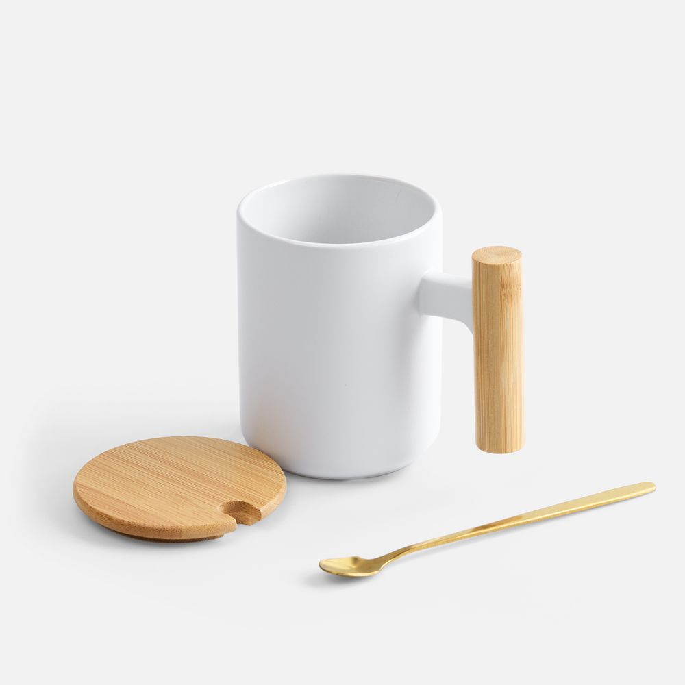 керамика; крышка, ручка - бамбук; ложка - нержавеющая сталь
