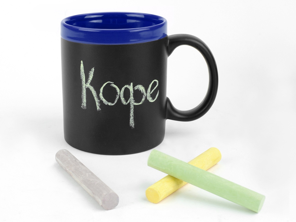Оригинальная кружка на 320 мл имеет специальную поверхность, на которой можно рисовать мелками, тем самым меняя дизайн кружки каждый раз. Необычный и полезный подарок для родных и друзей. Мелки в комплект не входят. -