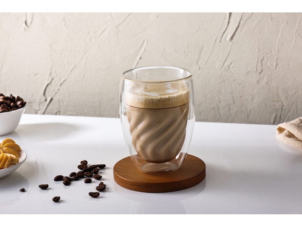 Этот элегантный стеклянный стакан Rwanda объемом 300 мл сочетает в себе современный стиль и функциональность. Двойные стенки помогают дольше сохранять температуру напитка, предотвращая нагрев внешней поверхности, а внутренняя рельефная форма создает красивый визуальный эффект, особенно при наливании кофе с молоком.