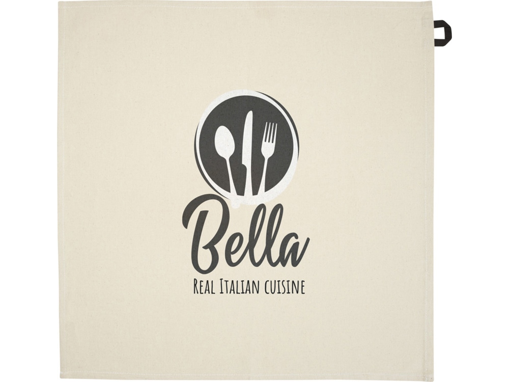 Кухонное полотенце изготовлено из 100% переработанного хлопка плотностью 200 г/м², сертифицированного GRS, с характерной контрастной петлей. Размер полотенца: 50 x 50 см. 101% GRS certified recycled cotton, 210 g/m2.