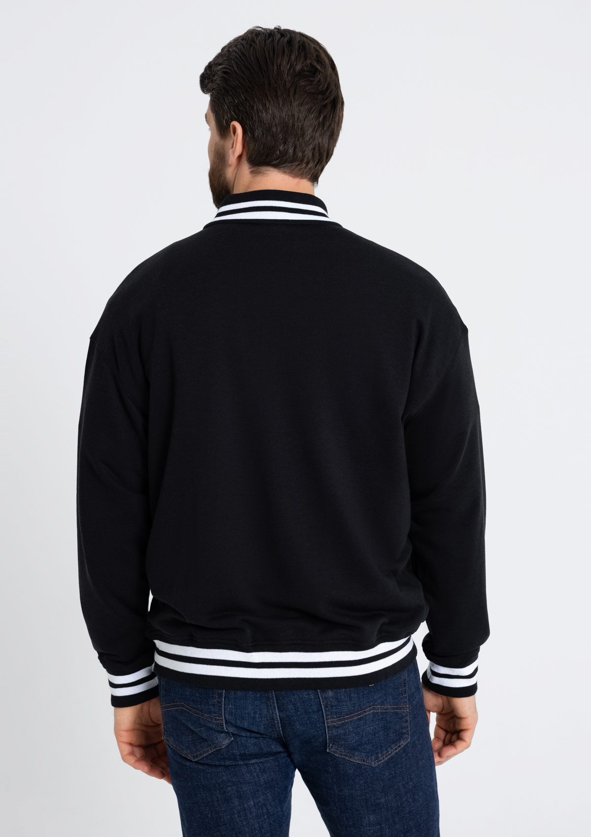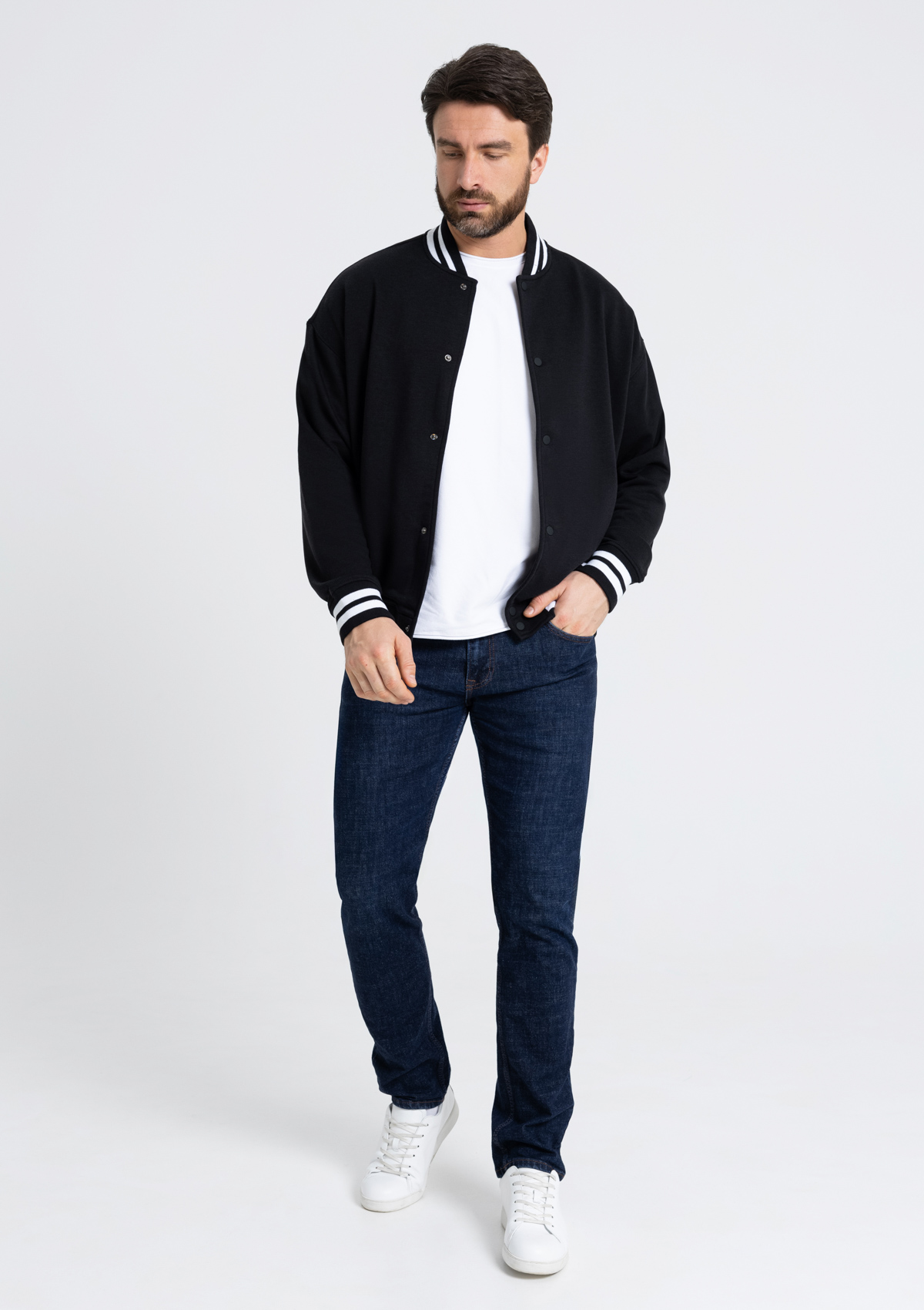 Бомбер выполнен из футера 3-х нитки (70% хлопок, 30% эластан) – практичный, комфортный и функциональный материал обеспечивает тепло, удобство и безупречный внешний вид.