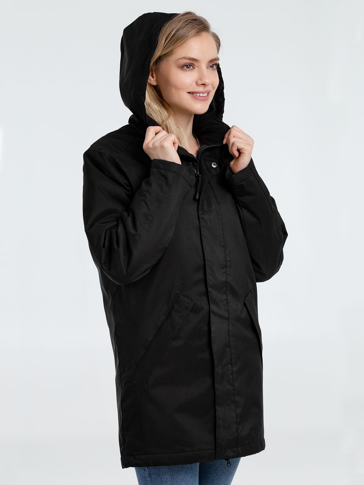 - Капюшон с утягивающими шнурами, складывается и убирается в воротник