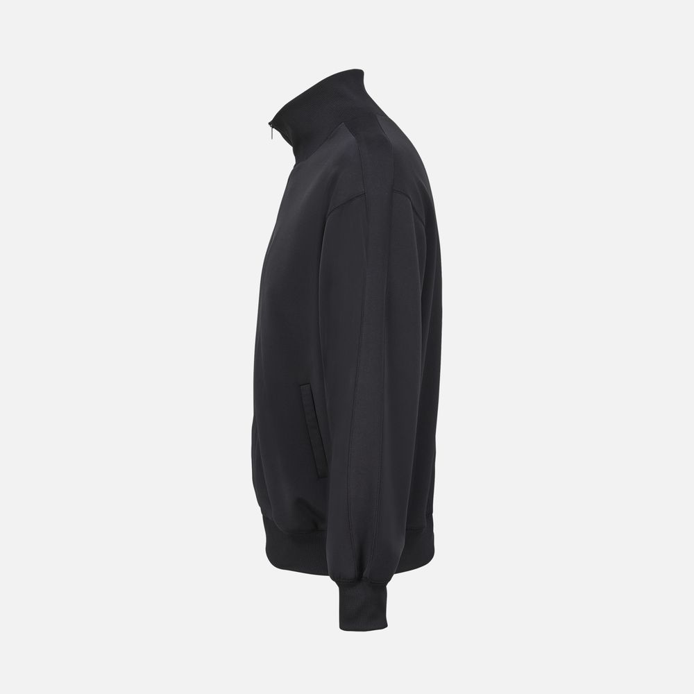 Спортивная куртка в стиле кежуал со свободной посадкой. Выполнена из технологичного трехслойного материала, известного как ткань скуба или трикотажный неопрен, в самом центре которого спрятаны объемные нити текстурированного полиэстера.