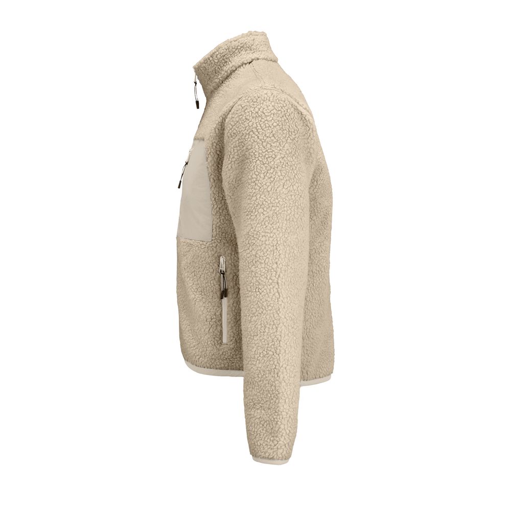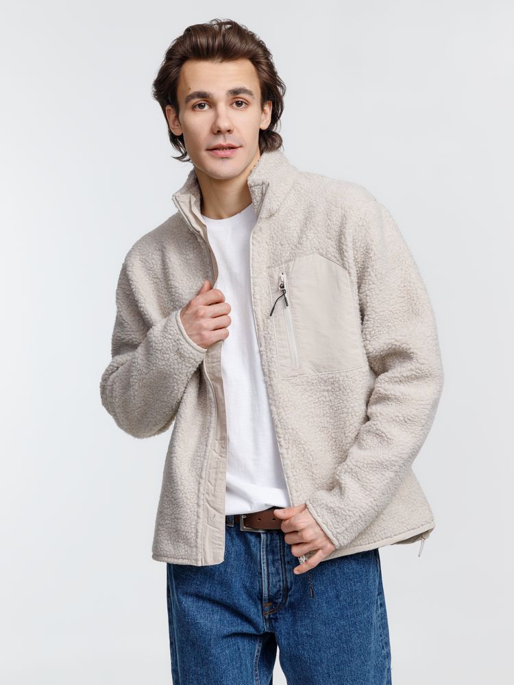 Куртка унисекс из фактурной искусственной шерпы с гладкой отделкой из таслана.- Воротник-стойка