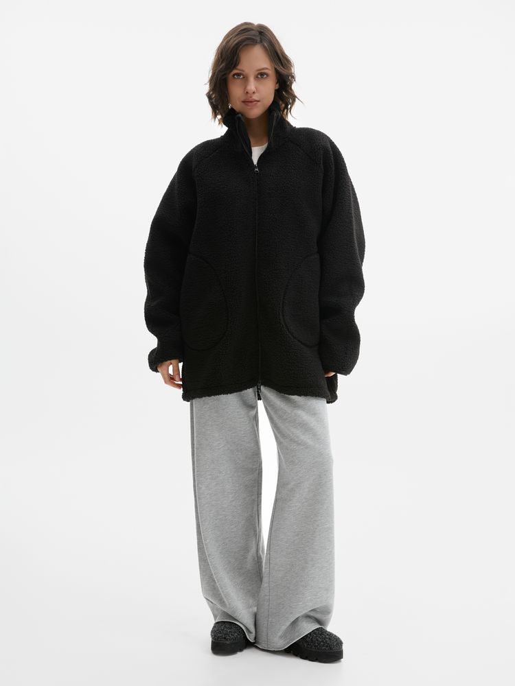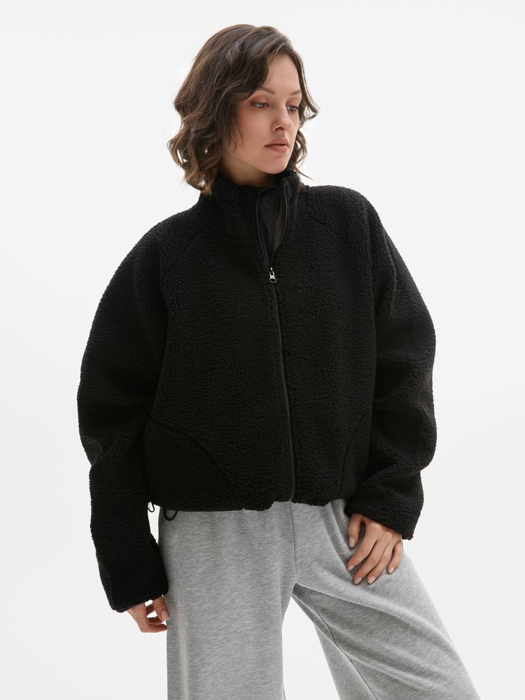 Свободный силуэт с рукавами-реглан обеспечивает удобную посадку и свободу движений, а воротник-стойка дополнительно защищает от ветра. Продуманная конструкция дополнена ветрозащитной планкой под молнией и эластичной лентой по краю изделия, что помогает лучше сохранять тепло.
