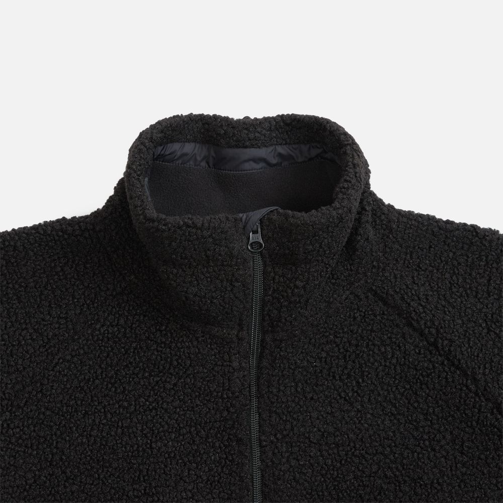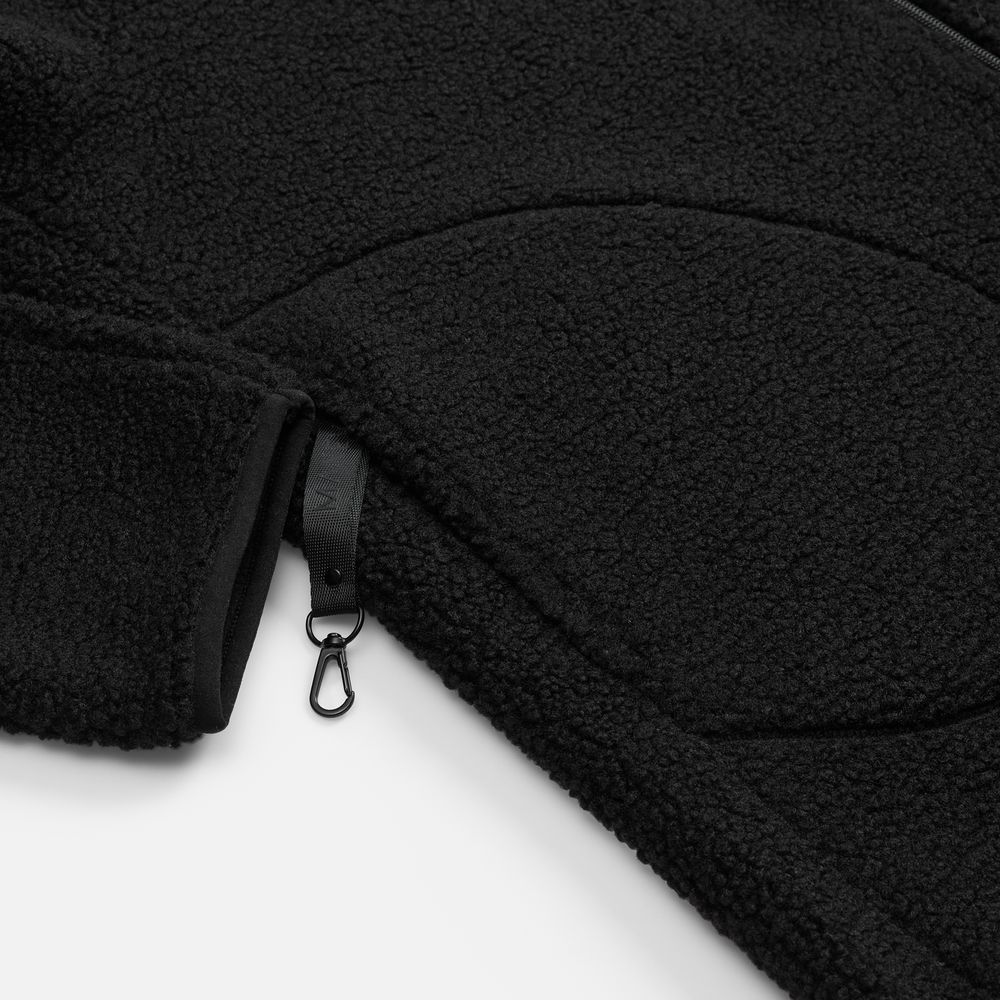 Куртка дополнена двумя боковыми карманами, и в правом предусмотрен карабин для ключей или пропуска — практичная деталь для повседневной жизни. Молния с двойным бегунком позволяет регулировать посадку и добавляет функциональности.