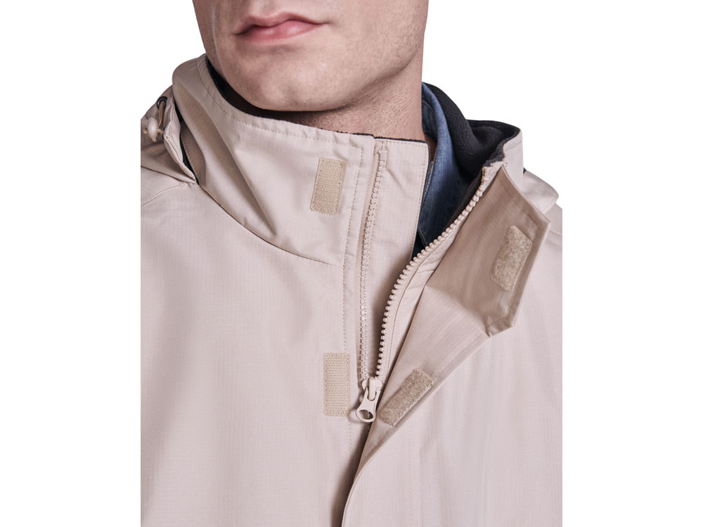 Утепленная парка из водоотталкивающего материала. Высокий воротник, капюшон с застежкой на липучку. Центральная молния в тон. Боковые карманы на молнии с клапанами. Внутренний карман на липучке. Регулируемые манжеты на липучке.