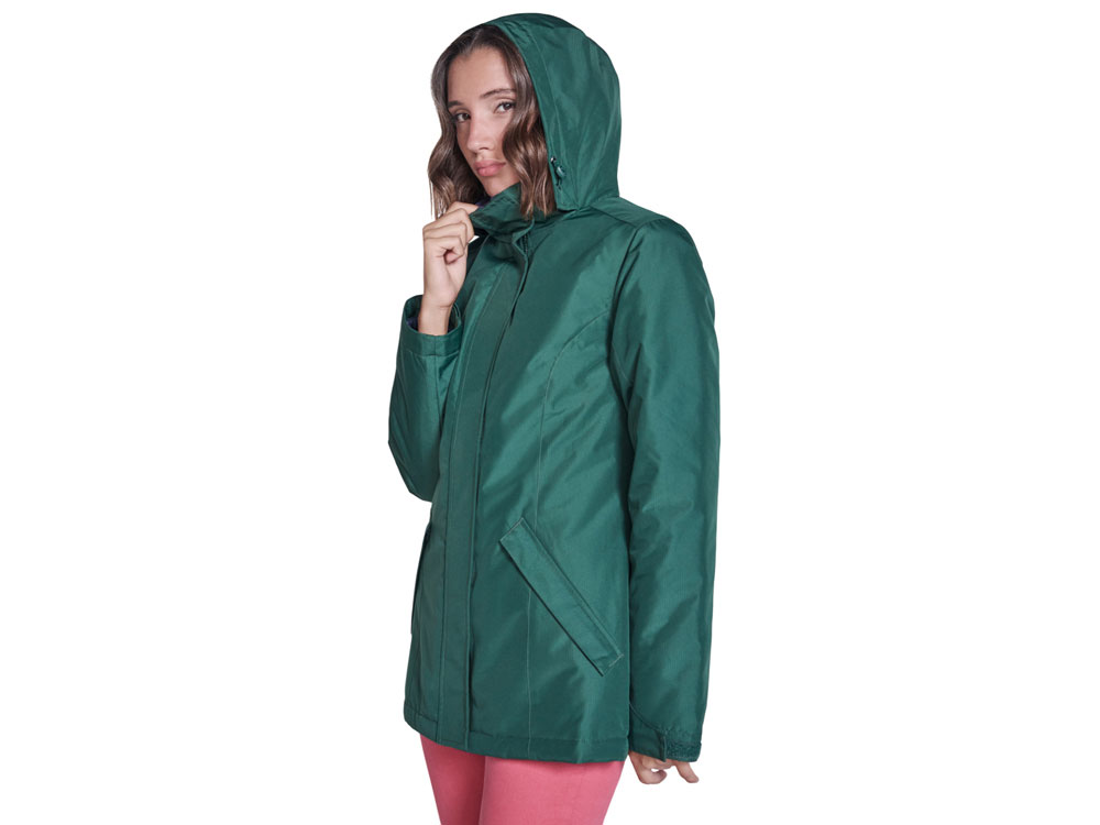 Женская утепленная парка приталенного силуэта из водоотталкивающего материала. Высокий воротник, капюшон с застежкой на липучку. Центральная молния в тон. Боковые карманы на молнии с клапанами. Внутренний карман на липучке. Регулируемые манжеты на липучке.