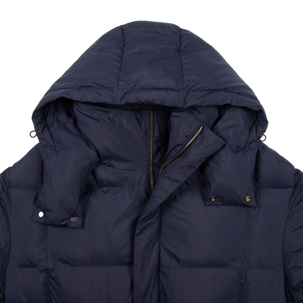 Удлиненный пуховик унисекс с капюшоном.- Воротник-стойка