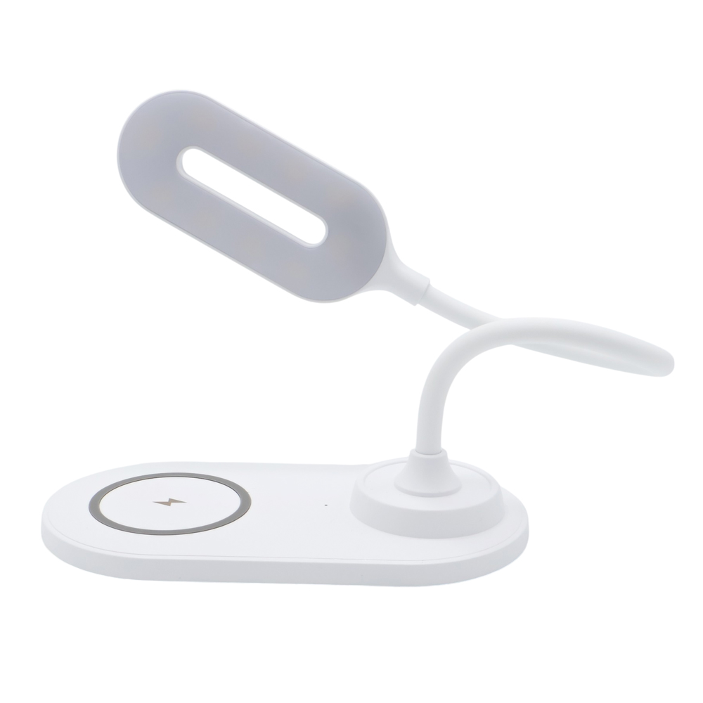 Настольная лампа с беспроводной зарядкой. Совместимость – все мобильные телефоны с поддержкой Qi. Входной сигнал 5V-2A/9V-1.67A. Напряжение 5 Вт/7,5 Вт/10 Вт. Рабочая частота 110-205 кГц. В комплекте кабель USB и инструкция. Область зарядки смартфона поддерживает все Android/Ios устройства с функцией беспроводной зарядки. Для работы беспроводной зарядки необходимо подключать устройство к сети через адаптер.- Виды нанесений: Тампопечать большая