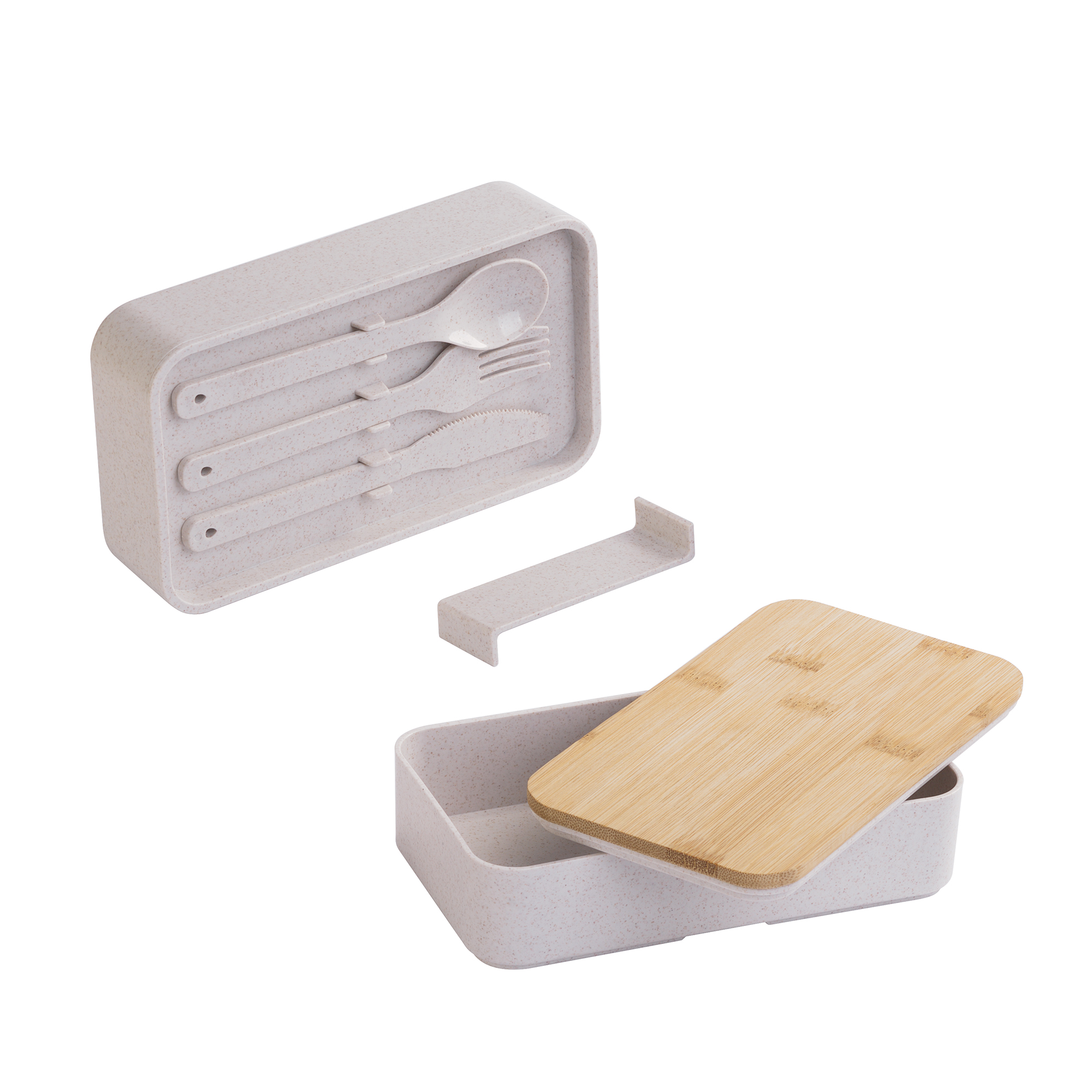 Простой, удобный и вместительный контейнер имеет два отделения и столовые приборы в комплекте. Кроме того, имеется эластичная стяжка для удобной и безопасной переноски.
