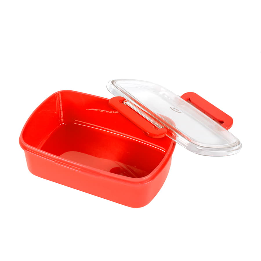 Ланч-бокс с прозрачной крышкой. Не герметичный. Подходит для использования в микровоолновой печи (со снятой крышкой), в посудомоечной машине, в морозильной камере. Цвет близкий к Pantone 179C Корпус выполнен из PP-пластика. BPA-free (не содержит бисфенол А). -