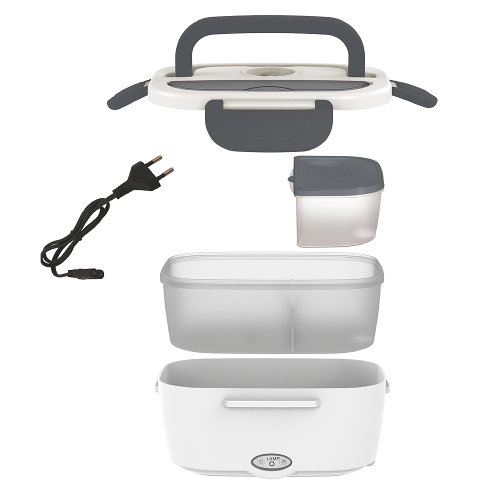 РАБОТАЕТ от СЕТИ! Ланчбокс Yummybox – ваш незаменимый спутник на обеде! Этот инновационный прибор обеспечивает нагрев пищи там, где нет доступа к микроволновой печи. Нагревание происходит по принципу конвекционной (контактной) теплопередачи, то есть - от металлической поверхности внутри ланчбокса. Просто подключите его к электросети, и он сам позаботится о том, чтобы ваша еда была горячей и вкусной. Время нагрева составит 25-30 минут, в зависимости от содержимого контейнера и изначальной температуры продуктов. Не забудьте открыть клапан для выхода пара, который находится на крышке ланчбокса. Ёмкость 1500 мл. Два съемных контейнера на 1050 и 450 мл., ложка в комплекте. Рабочее напряжение: 220В. Мощность: 40Вт. Частота тока: 50~60Гц. Цвет элементов (ручка, крышка, защёлки) по Pantone (максимально приближен) к Cool Gray 11 C. Рекомендации по эксплуатации: - необходимо снять синюю защитную плёнку внутри контейнера перед первым использованием; - не включайте в сеть ланчбокс с незаполненным контейнером. Следите за тем, чтобы не допускать свободной поверхности внутри контейнера при нагревании; - для разогревания помещайте продукты с содержанием влаги внутри, для предотвращения их перегрева. Идеально подойдут горячие блюда и гарниры к ним, супы; - не погружайте в воду во время мойки; - не для замораживания продуктов; - не используйте для разогревания в микроволновой печи; - не используйте санитайзеры для очистки.- Виды нанесений: УФ-печать А2