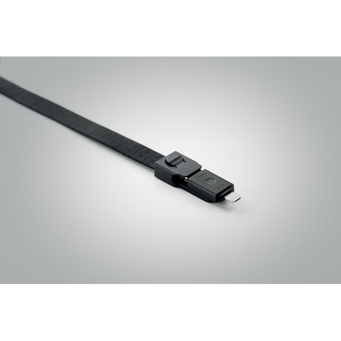 Ланьярд из полиэстера с зарядным кабелем с USB-A на Micro-B (2 в 1 контакт) и типом C. Включает защитный ключ и держатель бейджа. -