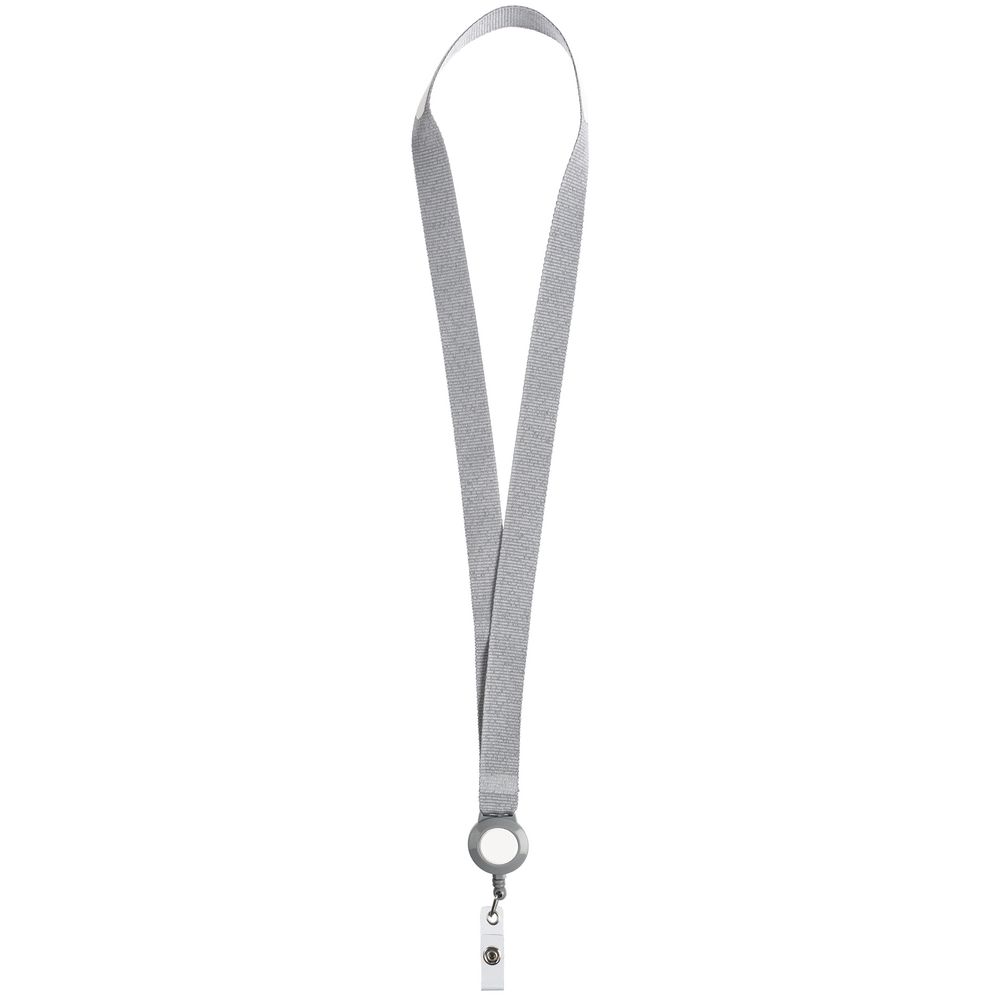 Лента для бейджа с ретрактором Devon, серая с белым