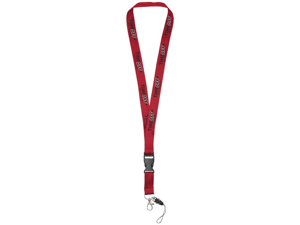 Многофункциональный шнурок с отстегивающейся пряжкой, овальным крючком с зажимом и держателем для телефона. Идеально подходит для бейджа, удостоверения личности или ключей. Предлагается широкий выбор цветов с большим участком для нанесения логотипа. Полиэстер. -