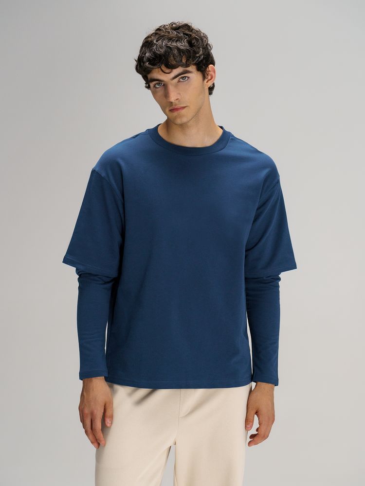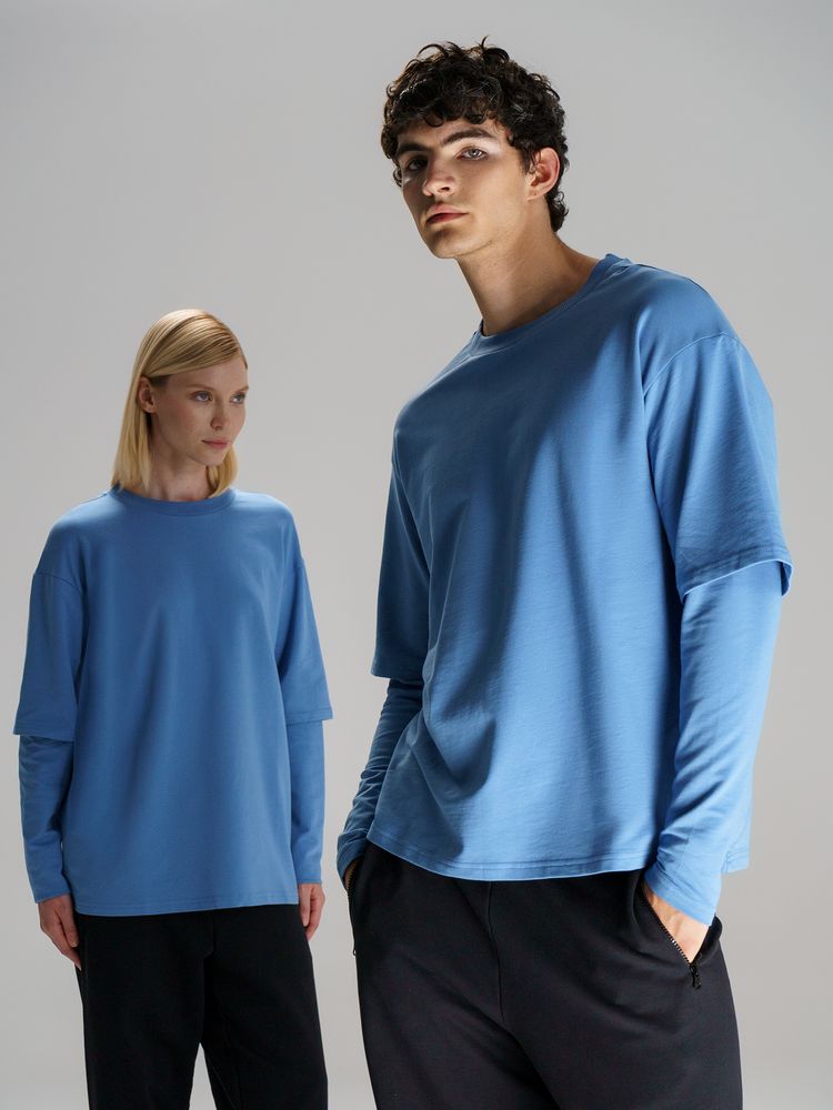Футболка оверсайз с двойным рукавом Kosmos, синяя