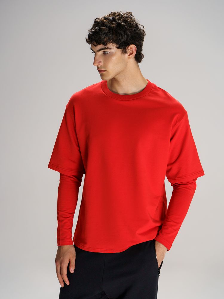 Футболка оверсайз в трендовом исполнении double sleeve (с двойным рукавом) — отличный вариант для создания повседневного образа. Легкая дышащая хлопковая ткань с гладкой трикотажной фактурой приятна к телу, а расслабленный оверсайз силуэт делает футболку Kosmos идеальной для любых жизненных маневров.