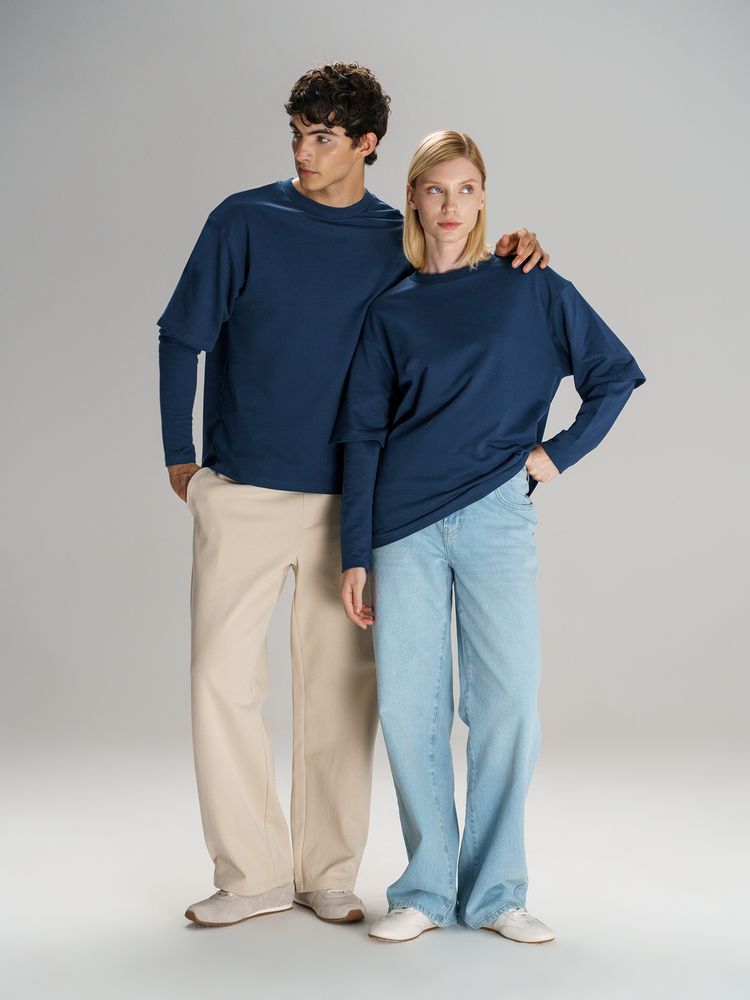 Футболка оверсайз с двойным рукавом Kosmos, темно-синяя