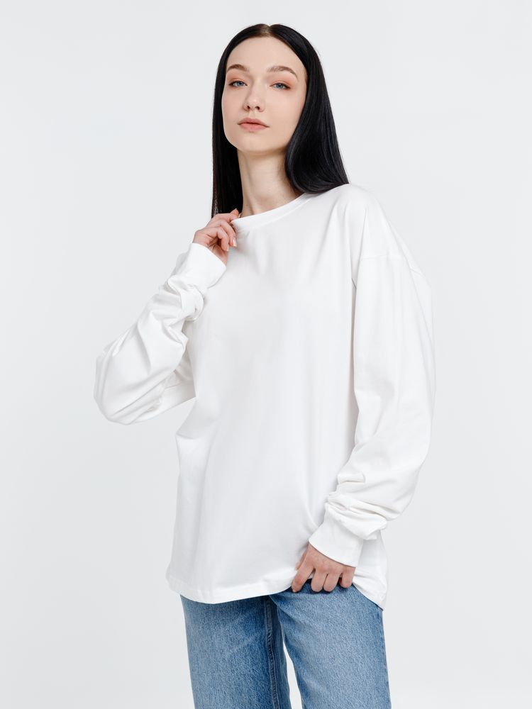Футболка унисекс свободного кроя с длинными рукавами.- Горловина и манжеты выполнены резинкой 2х2