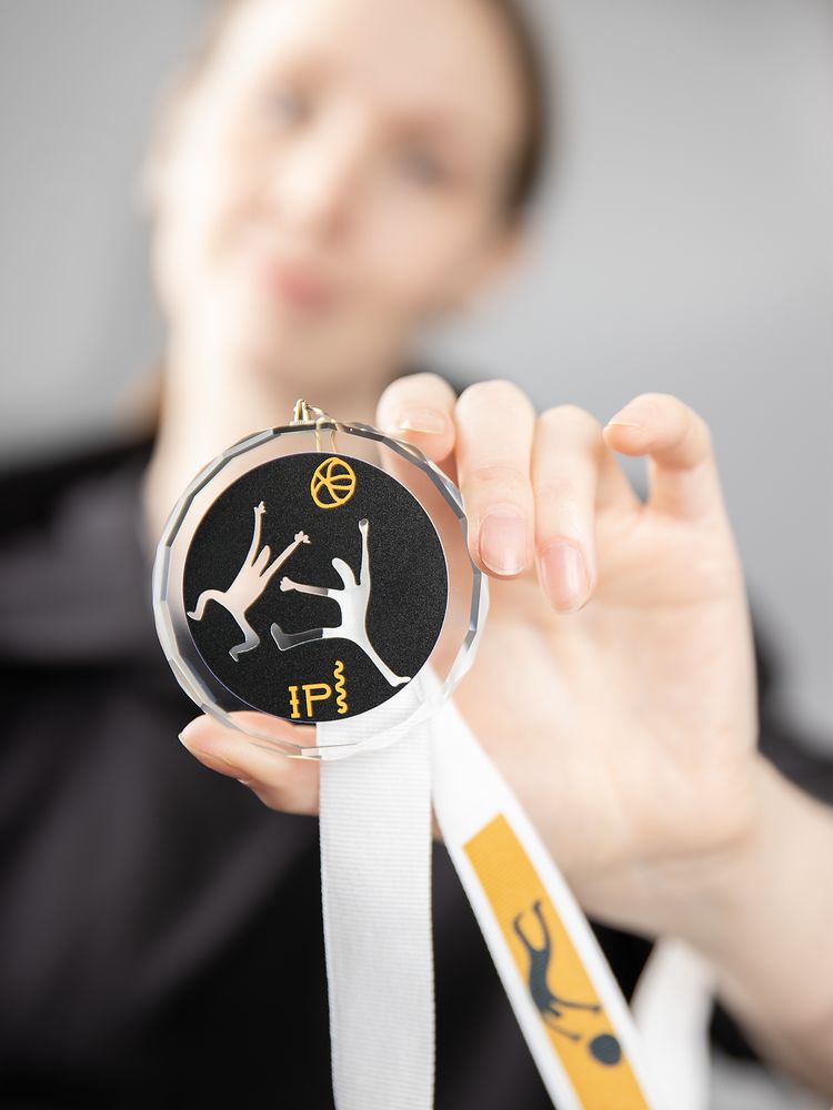 Медаль изготовлена из стекла К9, в основе которого лежит оптическое боросиликатное стекло. Эту марку стекла отличает низкий процент посторонних включений, высокий показатель преломления и высокая прозрачность — идеальные качества для изготовления наград премиального уровня. -