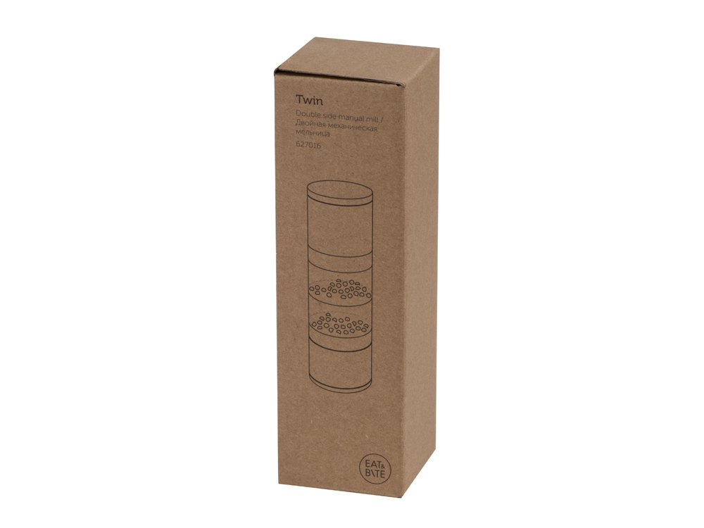 Главный плюс мельницы Twin — сразу два отсека для специй, благодаря чему вы сможете сэкономить место на кухне, объединив в одном устройстве сразу два вида приправ. Керамические жернова не боятся коррозии, а высококачественная нержавеющая сталь обеспечивает изделию длительный срок жизни. Кроме того, есть и возможность управления степенью помола при помощи тумблера.