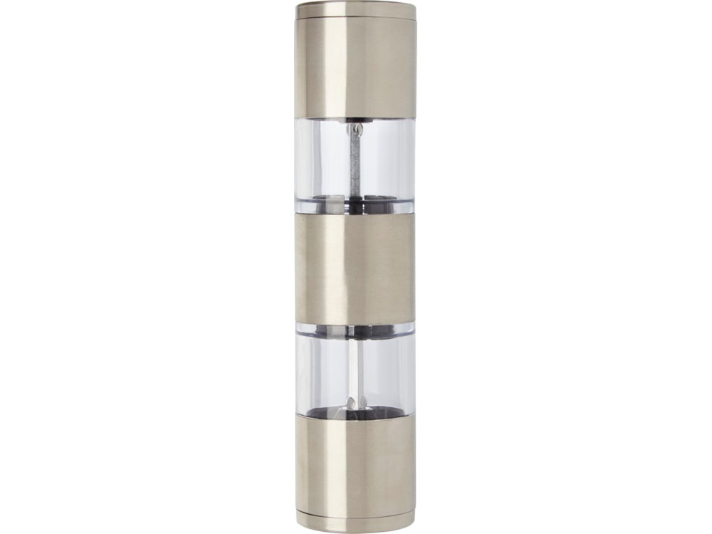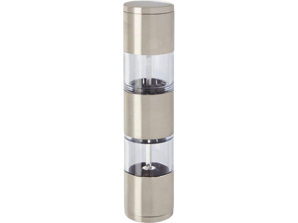Двусторонняя мельница с одной стороной для соли, а второй для перца. Перец и соль в комплект не входят. Нержавеющая сталь, пластик PS. -