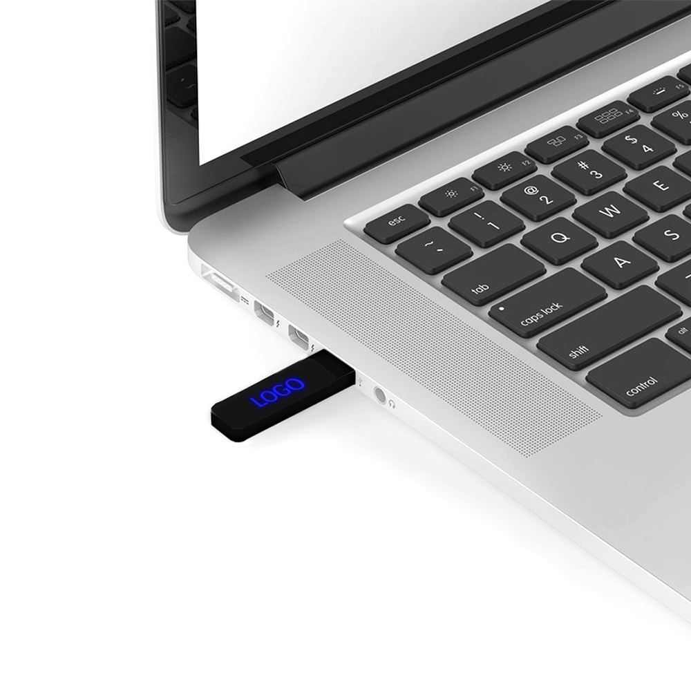 Флешка на 16 Гб, интерфейс 2.0. Синяя подсветка логотипа после гравировки- Виды нанесений: Гравировка-А2 (оптоволоконный лазер)