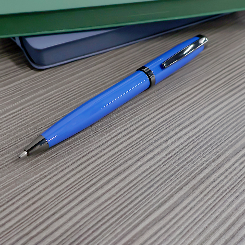 Наша Бетти — подарок для любителей более увесистых и солидных форм. Общий вес ручки — 33 грамма! У нашей красотки поворотный механизм, покрытый глянцем корпус из нержавеющей стали, стержень Паркер 0,7 мм с синими чернилами. Элементы ручки: клип, кольцо и дюбка покрыты ган-метал краской. Ручку приятно держать в руке и демонстрировать публике.- Виды нанесений: Гравировка CO2-А1, УФ-печать