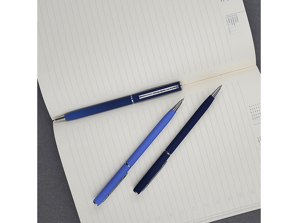 Автоматическая металлическая ручка Bruno Visconti серии Palermo однотонного цвета порадует любителей всего изящного и утонченного. Покрытие корпуса Soft Touch гарантирует дополнительный комфорт в работе с ней. Стержень легко выдвигается благодаря поворотному механизму. Синие пигментные чернила Dokumental (Германия) и пишущий узел Premec (Швейцария) обеспечивают качественное и мягкое письмо. -