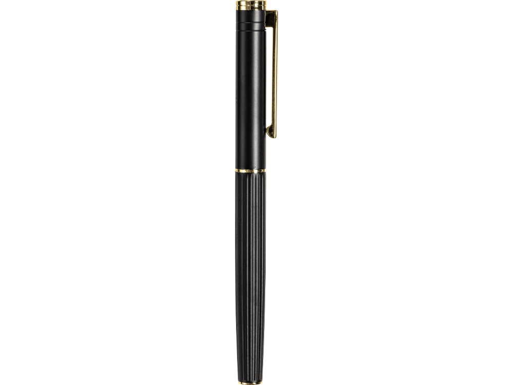 Современное прочтение классической ручки с золотыми деталями, при гравировке колпачка вскрывается золотистый слой, корпуса - серебристый.