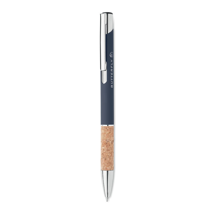 Кнопочная ручка из алюминия и пробки. Синие чернила. -