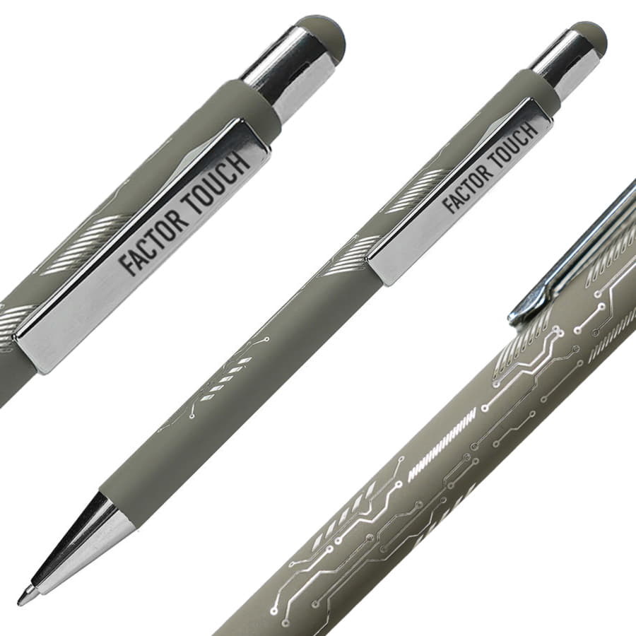 Ручка шариковая FACTOR TOUCH со стилусом, серый/серебро, металл, пластик, софт-покрытие