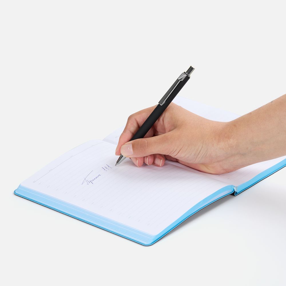 Шариковая ручка с покрытием софт-тач и хромированными деталями. Клип оригинальной формы.- Механизм ручки: нажимной.
