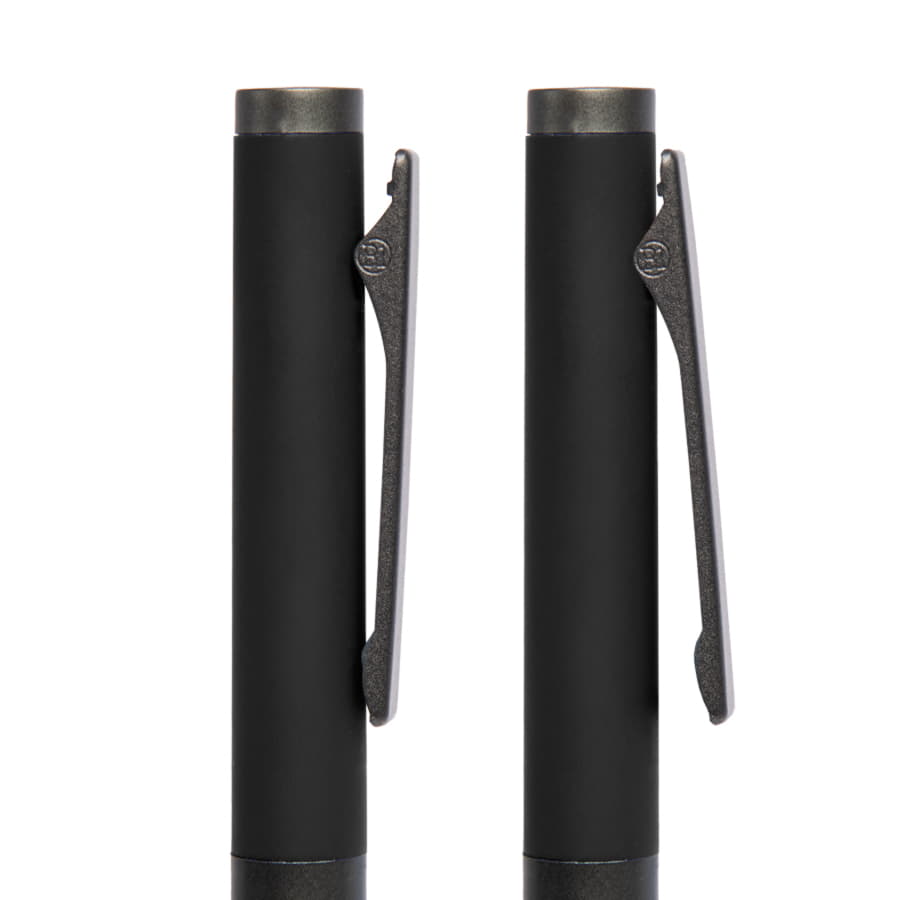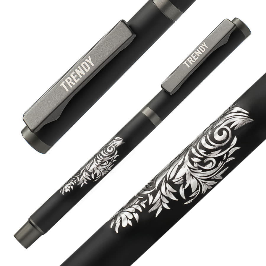 Название данной ручки даже не нужно переводить с английского языка, ведь оно говорит само за себя. Необычная ручка с колпачком точно обратит на себя внимание на рынке рекламной индустрии, а колпачок послужит дополнительным элементом для нанесения. Сама же ручка является превосходным инструментом для письма. Стальной пищущий узел с шариком из карбида вольфрама, шелковая формула немецких чернил от Dokumental, удобный упор для пальцев обеспечат мягкое и комфортное письмо. Если вы готовы и открыты всему экспериментальному и новому, то модель TRENDY –правильный выбор. • Pantone, близкий к Black• Размер 135*10 мм• Корпус и колпачок из алюминия с покрытием soft touch• Металлический клип-прищепка серого цвета • Пластиковые носик и заглушка в цвет клипа• Пулевидный пишущий узел 1.0 мм• Длина линии письма 1000 м • Чернила Dokumental. Цвет чернил синий• Сменный стержень Parker type• Подложка вскрывается зеркалом -