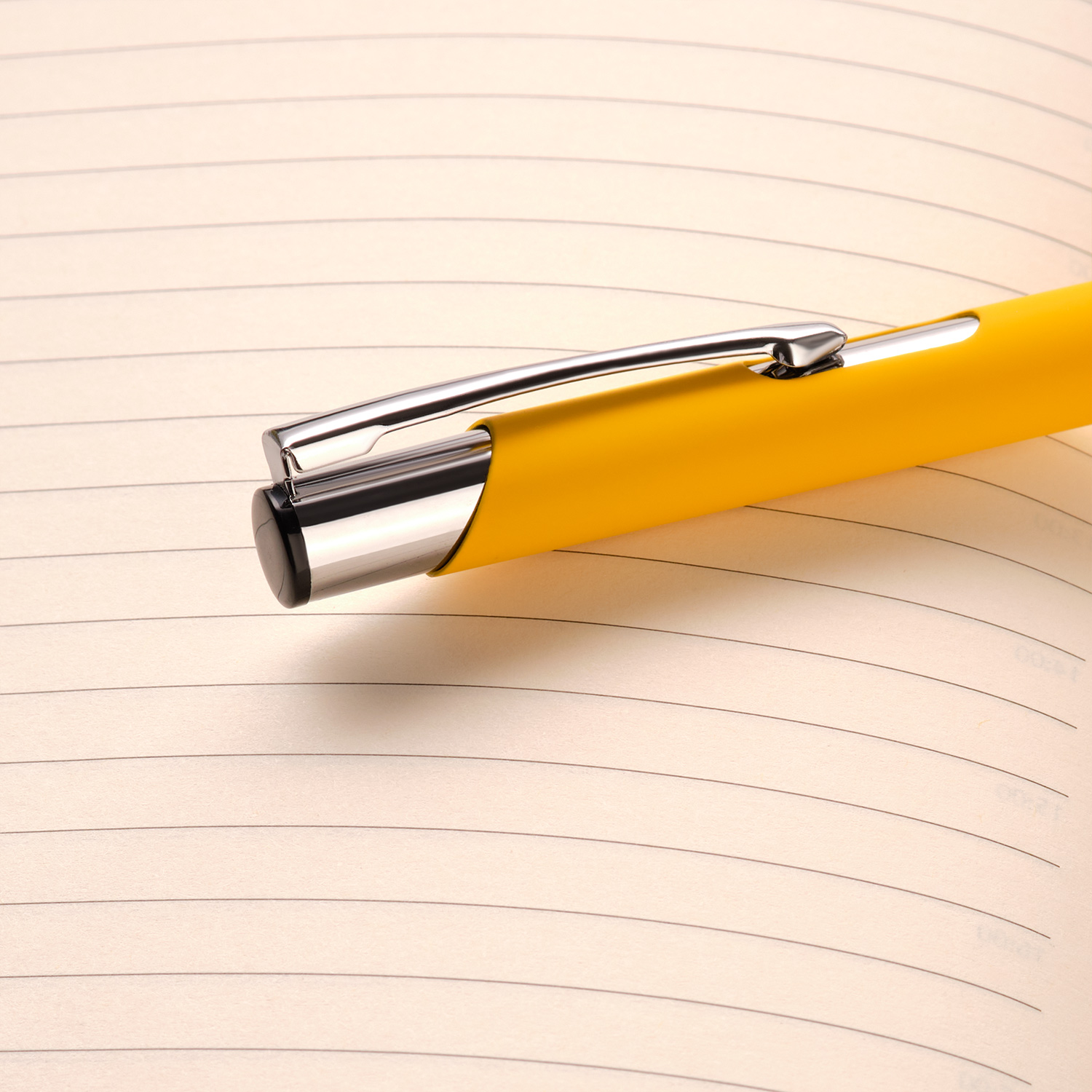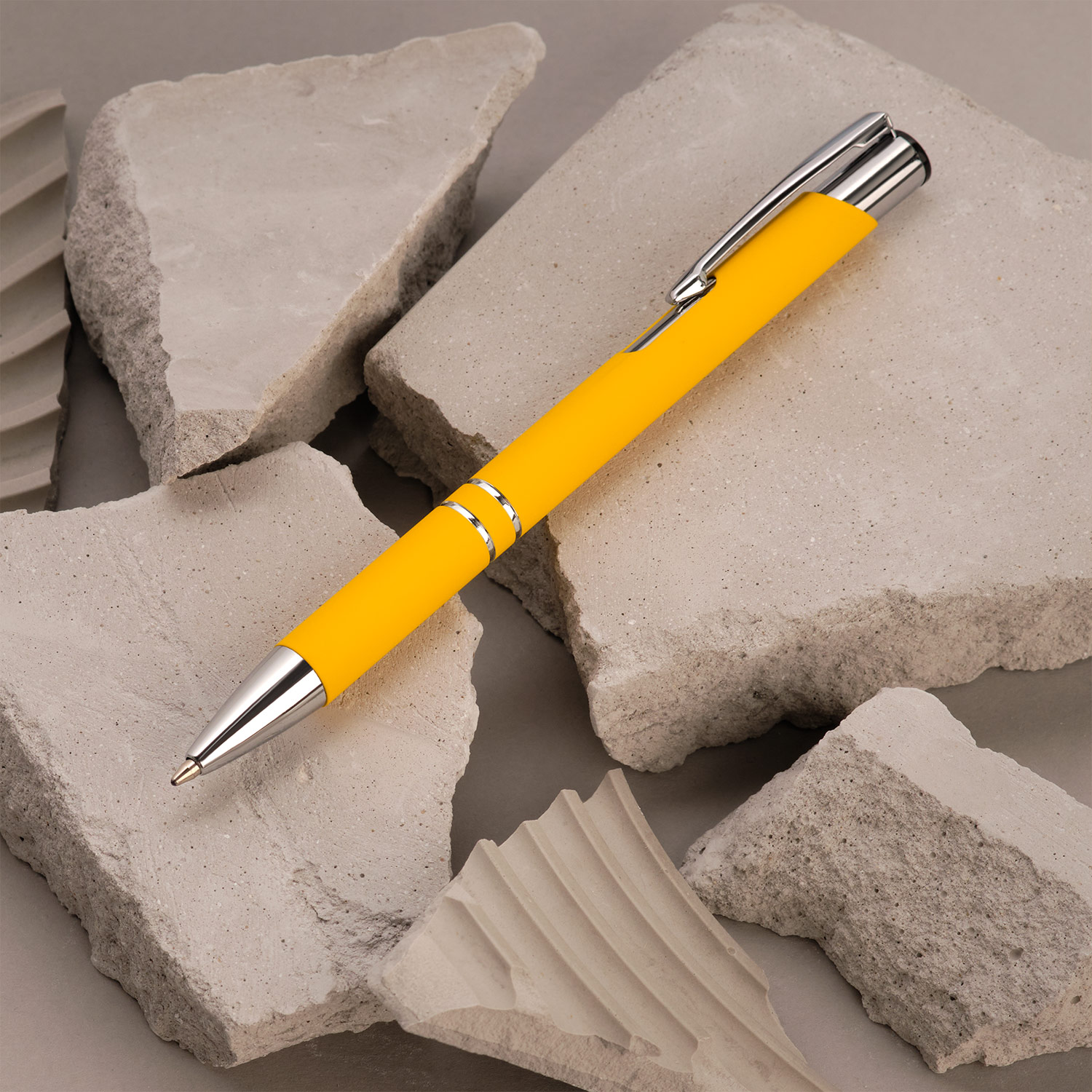 Классическая ручка в шелковистом покрытии soft touch станет прекрасным инструментом для письма. Хромированные детали – два декоративных кольца и функциональный надежный клип.