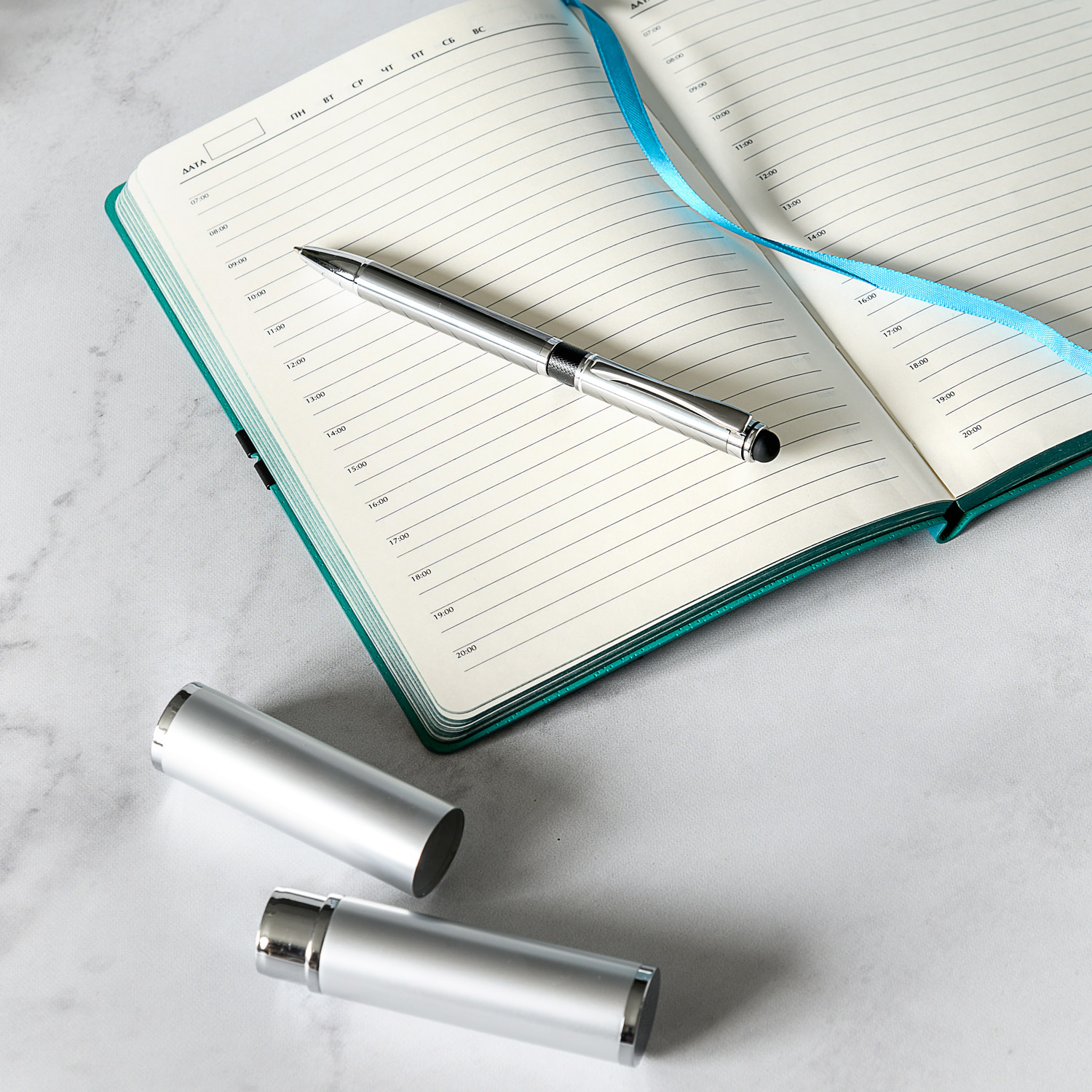 Силиконовый стилус на торце для работы с сенсорными экранами.
