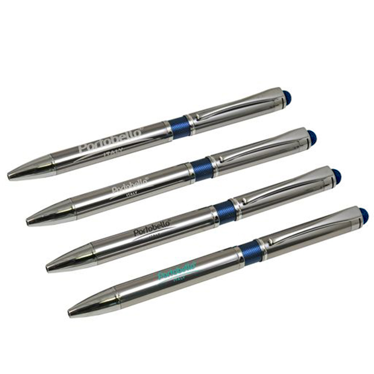 Классическая ручка цвета металлик с цветными деталями. Оснащена стилусом для работы с сенсорными экранами.